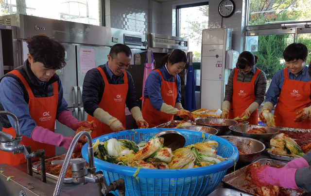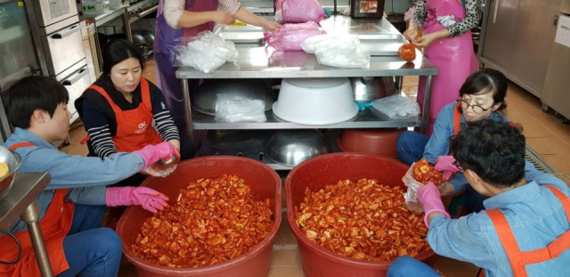 오일허브코리아인들은 함께 무를 썰고, 다듬고, 버무려서 김치와 부식재료 등을 어르신댁에 전달해드립니다.