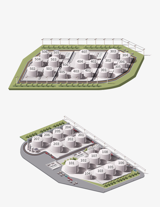OKYC의 36기 탱크, 4선석 부두, 안전 환경시설 등 최신식 설비를 한 눈에 보실 수 있습니다.